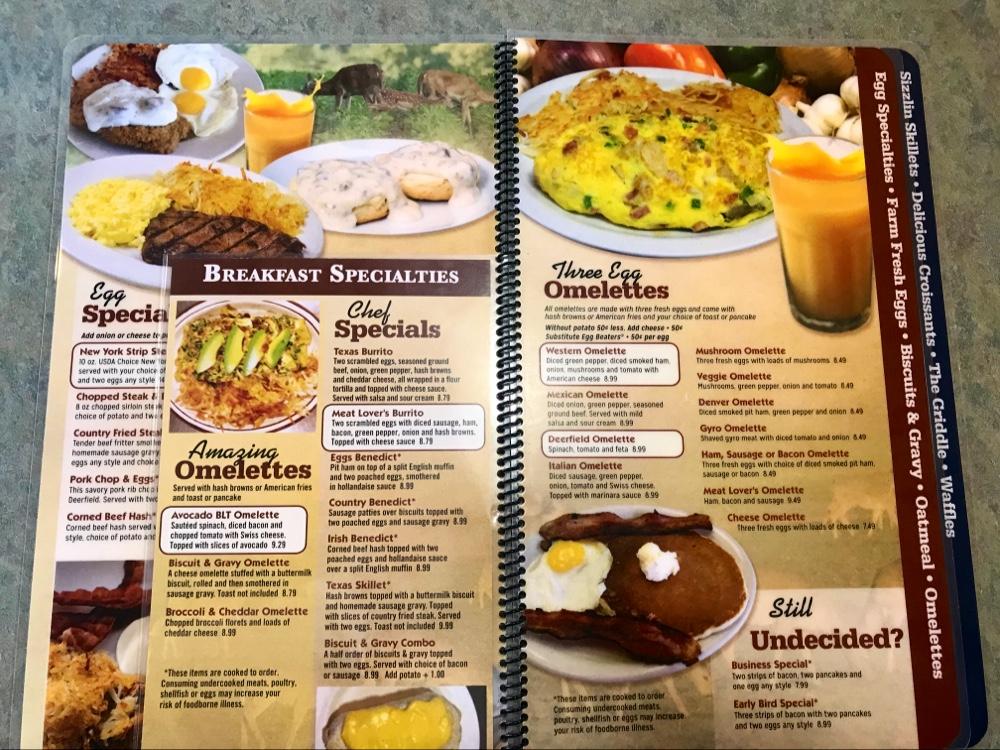 The menu features a wide range of dishes. Breakfast items, like thick French toast and classic skillets, shine. Diners appreciate the variety, from hearty omelettes to decadent pancakes. Lunch and dinner showcase local favorites like chicken melts and burgers.